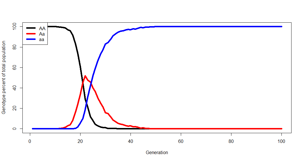 Plus, you can play with the mutation rate between alleles (what happens if the whole population is AA but there is some chance of a spontaneous A–>a mutation? What happens if this ‘a’ allele confers some fitness advantage?)